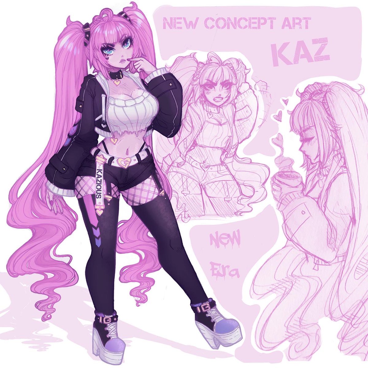 Hi guys! I’ve been gone forever, but I thought I’d be more active here again! Here’s some of my latest work featuring my slightly new style! 🤍 #art #artwork #artist #anime #animeart #kawaii #characterart #ocs #pink #aesthetic #originalcharacter