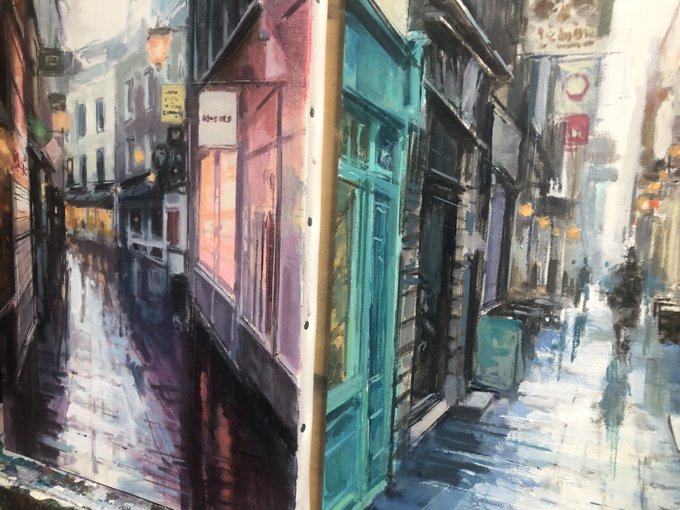 2022『早朝の小路 』41×27㎝(P6号) oil on Canvas painted by Kazu Teramoto #oilpainting #cityscape #artworks #油彩画 #街 #landscapes #painter #citylights #oilpainter #油絵 #kazuyoshiteramoto #rainyday #雨の街 #rainycity #油彩 #絵のある暮らし