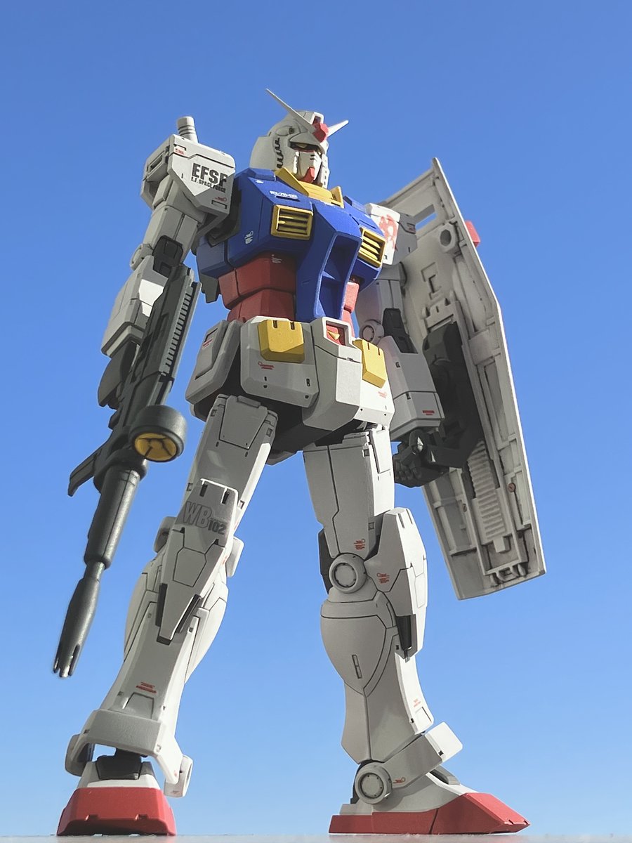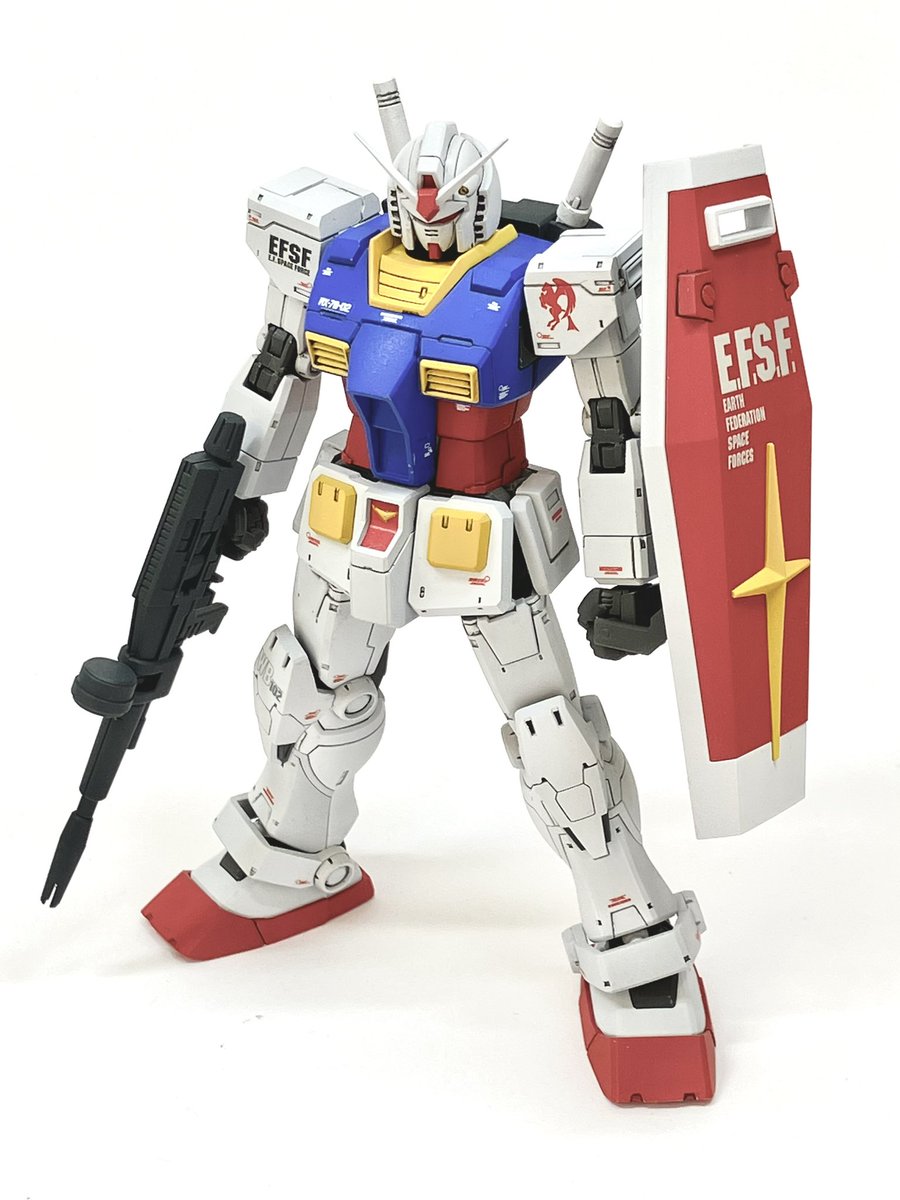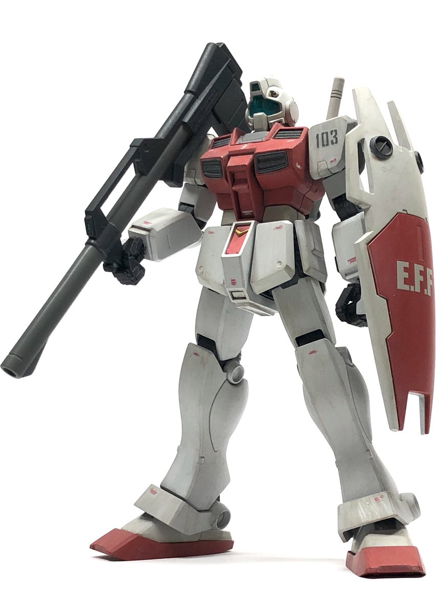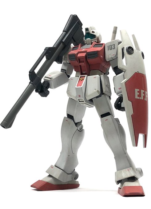 ・頭部若干形状変更 ・アゴ引きと頭部後退 ・胸部前面を少し平滑化 ・腰で縦に1mm延長 ・足首関節を2mm延長 ・肩、拡散ビーム砲、腹部、リアスカート等にスラスター等を追加 ・左拳はキットの物を加工 ・ビームバズーカは不安定ということで、左腰にサブ兵装のマシンガンを懸下 #ガンプラ