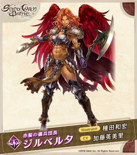 現在事前登録受付中で11月リリース予定の『スピードウィッチバトル』で赤髪の傭兵団長ジルベルタのイラストを描かせて頂きました。 CVは加藤英美里さん。 皆様、どうぞよろしくお願い致します^^ speed-witch-battle.jp #スピードウィッチバトル #スピバト