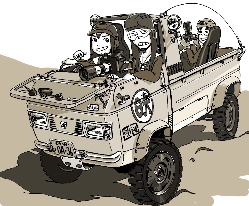 #映像研 ロケハンカーを妄想して描いてみました。ベースは1970年頃のキャリィトラックで四駆のキャリィのフレームに載せてリフトアップしてるという設定です。 #映像研には手を出すな #ファンアート #スズキ #SUZUKI