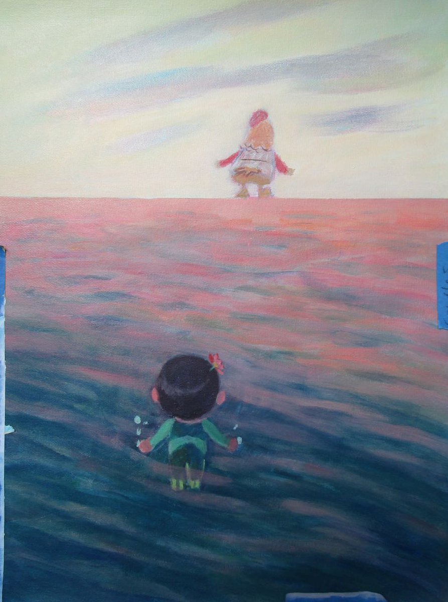 この波紋を描く根気がないと思いましたが、ため息をつきながら何とか描き上げました。アクリル画だからCGみたいな透明感のある美しさがないのが残念。Doesn't look like a sparkly CG, but this is my interpretation. #AnimalCrossing #ACNH #どうぶつの森 #どう森 #どう森美術部 #絵 #イラスト twitter.com/KazumiSeattl…