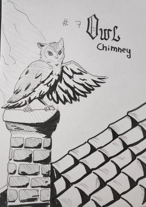 7 : Owl / Chimney #Inktober #rkgk #drawing