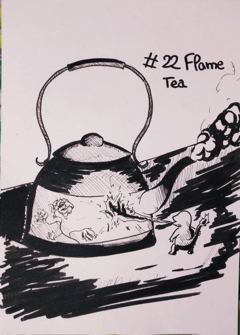 22 : Flame / Tea #Inktober #inktober2022 #rkgk