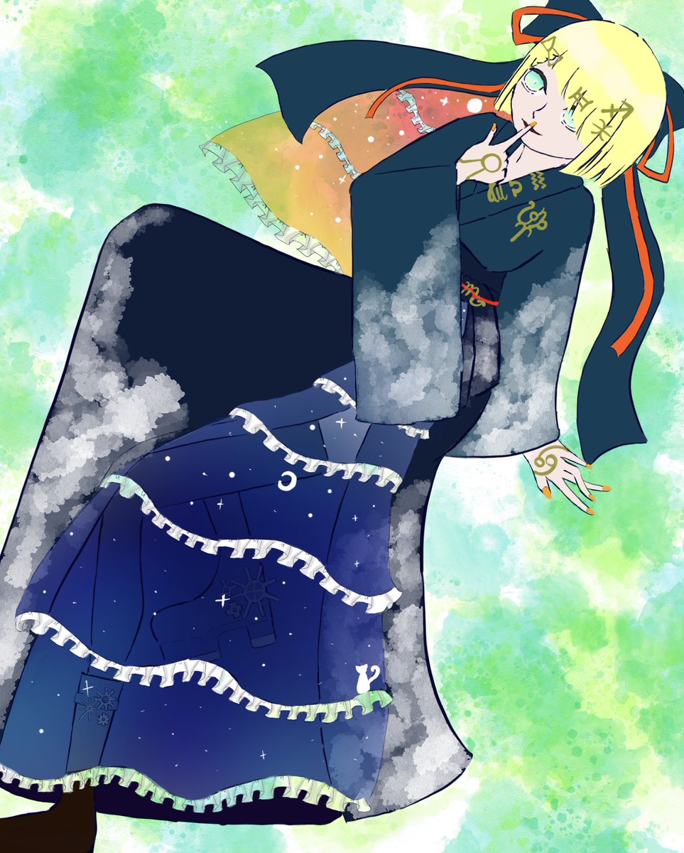 #絵を彩度100にすると超派手 ×2 #彩度100にした画像をさらに彩度100にすると超超派手 #イラスト #創作イラスト 彩度100にした画像がいい感じだと思ったので 彩度100にした画像をさらに彩度100にしてみたよ 目ん玉ギュインてなるので気をつけて