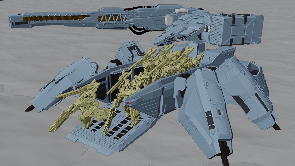 95.艦載機「カスタント・オーペン」 反重力装置を備えた機動兵器。反重力装置の受けた力を制御する能力を利用して、発艦直後は射出時の運動エネルギーを制御して色んなところに飛び回る。戦闘時は核融合炉から反重力装置にエネルギー供給する。