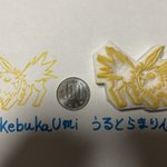 今回は私の推し、個人Vtuberの闇貸かなさん(@yamigashikana)さんの消しゴムはんこを彫りました!(社長さんなので社章も) ポケモンが強くて話も面白いしリスナーさんに優しい! 画像の使用許可、及び私の手を心配してくれた社長に感謝します。 #個人Vtuber #闇貸かな #闇がシート #消しゴムはんこ