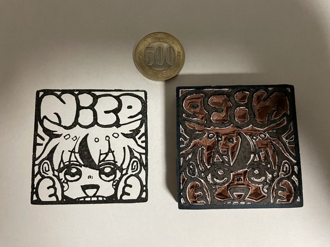 11 33 今回は私の推し、個人Vtuberの闇貸かなさん(@yamigashikana)さんの消しゴムはんこを彫りました!(社長さんなので社章も) ポケモンが強くて話も面白いしリスナーさんに優しい! 画像の使用許可、及び私の手を心配してくれた社長に感謝します。 #個人Vtuber #闇貸かな #闇がシート #消しゴムはんこ 23/04/30 19:00
