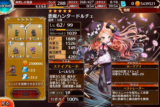 52 62 そんな訳でVH2覚。5連射+隠密 or 特攻+デバフって感じかすら? 19/03/22 15:19