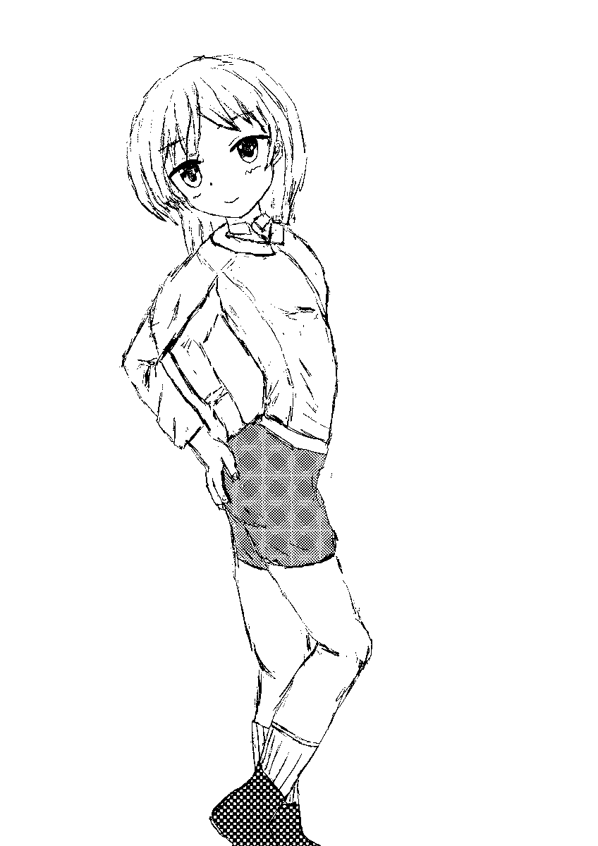 1 7 今年のクロッキー〆回! ポーズから一つ選んでキャラにする練習。今日もトーンはつかってみました。丑年に向けて巨乳差分も描きました。 #ぺ子と朝クロッキー 20/12/31 12:51