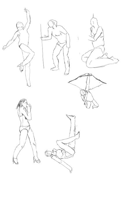 今年のクロッキー〆回! ポーズから一つ選んでキャラにする練習。今日もトーンはつかってみました。丑年に向けて巨乳差分も描きました。 #ぺ子と朝クロッキー