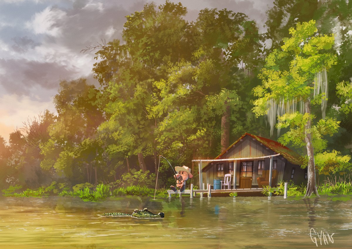 「沼の家」 #背景美術 #風景画 #イラスト #painting