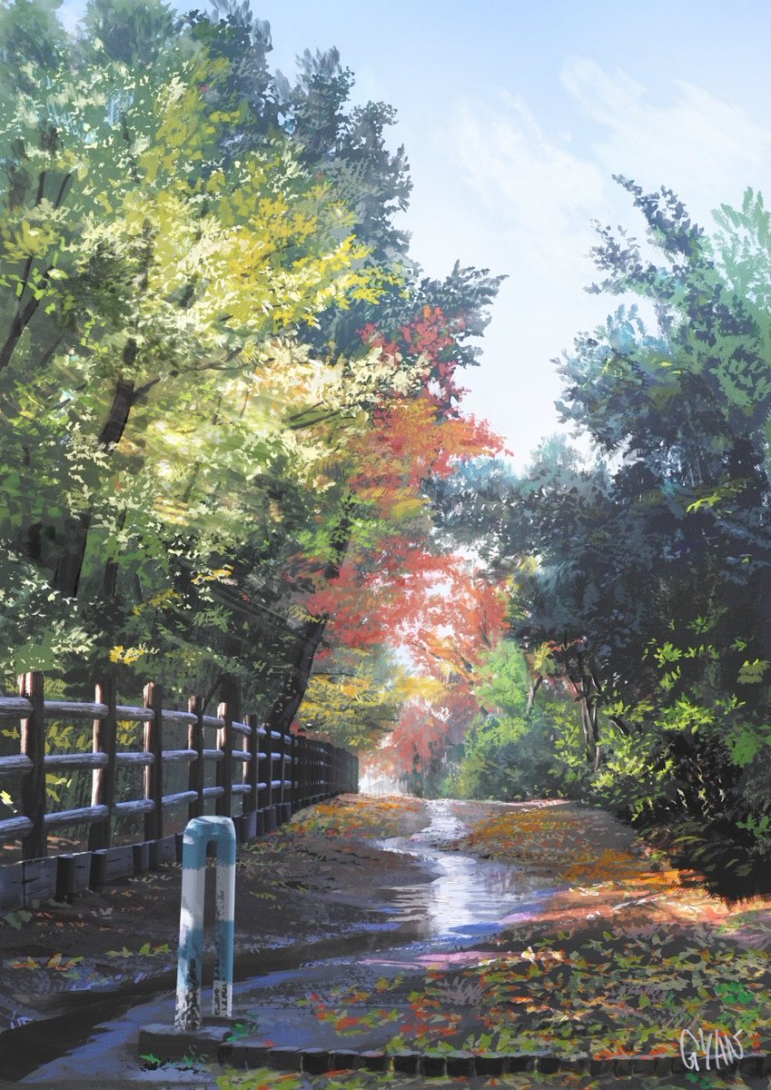 散歩して出会った風景。 心地よい日差し。 #背景美術 #風景画 #イラスト #painting