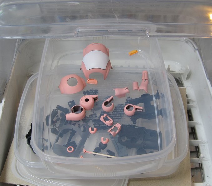 1 15 下塗りができたんで、山善で一晩乾燥。 #メカトロウィーゴ 21/03/19 22:20