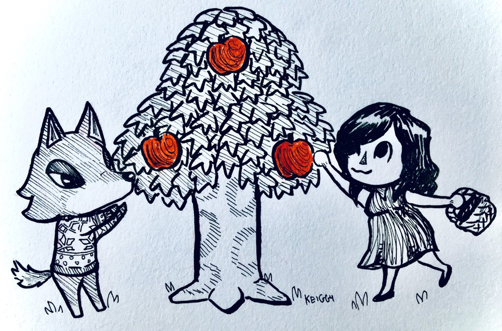 🍎DAY 10: PICK🍎 “Hey, let's go down where the river meets, and frolic around among the trees where we can pick a couple apple treats, and then lay around peacefully on the beach.” I miss the warm fuzzy feelings of Animal Crossing New Leaf. #Inktober #AnimalCrossing