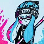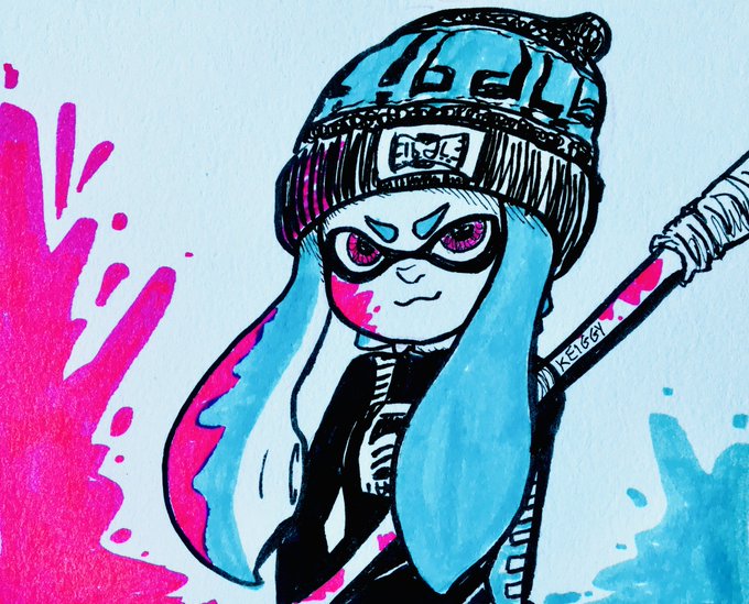 🦑DAY 25: SPLAT🦑 “WOOMY.” Reminiscing of my days as a Roller menace. Later today, a Splatoon zine I participated in will be public! Be sure the check it out at @splatunegijink1 #inktober2021 #Splatoon