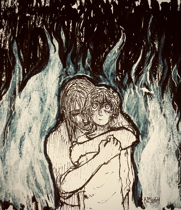 🔥DAY 28: CRISPY🔥 “And I was afraid I would see who I was You were the child that I once knew I am a saint; I will haunt you at night… ” Oh, dear. #inktober2021 #Halloween #horror