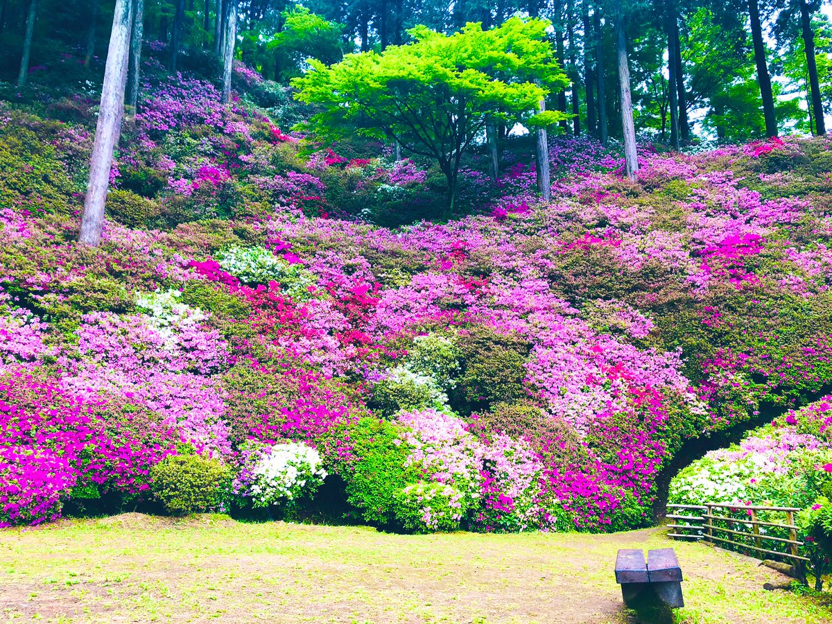 昨日行ったつつじ寺🌺 さいこーでした👏 るるちゃんもキレイな花を見て癒されてました🙆♀️ 葉くんにとってははじめての花々🦊💕 #けいめぐ服 #MDDはいいぞ #COCORIANG #ノードール・ノーライフ