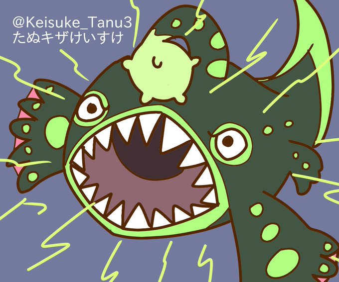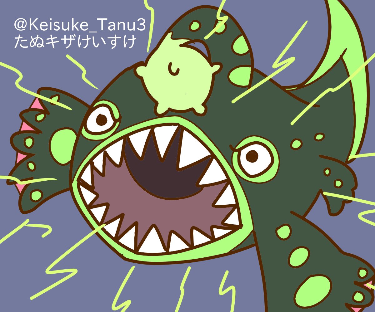 #オレカバトル版深夜の真剣お絵描き60分一本勝負 毒属性の技を使うモンスターより。 魔海魚ブブリを描きました✨ 水属性のモンスターしか参加できない大会。溟海の陣ではワタクシのブブリが大活躍しました🐡