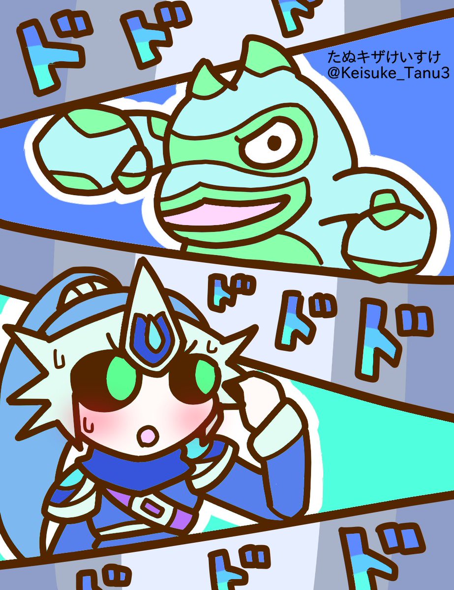 #オレカバトル版深夜の真剣お絵描き60分一本勝負 「カットイン」より、ブリューvs水の戦士フロウの架空カットインのです。 台詞は書けなかったですが、 ブリュー『フロウ!オマエをたおしてフィスカさまにほめてもらうギョ!』 フロウ『このナゾの生き物はいったいなんですか!?』 って感じです。