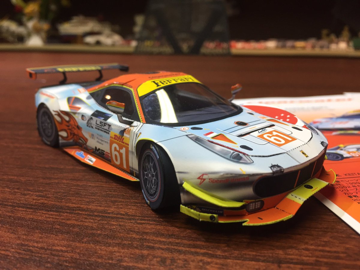 アップリフト様製作の恒例ペーパークラフト完成っ‼︎ Le Mans 24hドライバーパレードで配る!! 支援者の皆さんにもプレゼント予定。 Fタイヤ切れる、エンジンルーム&コックピット忠実再現。 #ペーパークラフト #難易度五つ星 #アップリフトモデル #keitasawa #wec #488gte