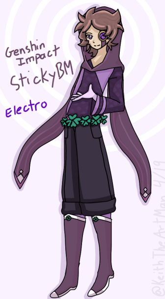 5 18 IVE FINISHED YES YES YES YES YES #StickyBMFanart #GenshinImpact I MADE STICKY IN GENSHIN AAAAAAAAAAAAAAA (ok look, I PLANNED TO MAKE HIM ANEMO OR DENDRO BUT THE COLOR PALLETTE WAS SO MUCH LIKE AN ELECTRO) 22/04/19 16:25