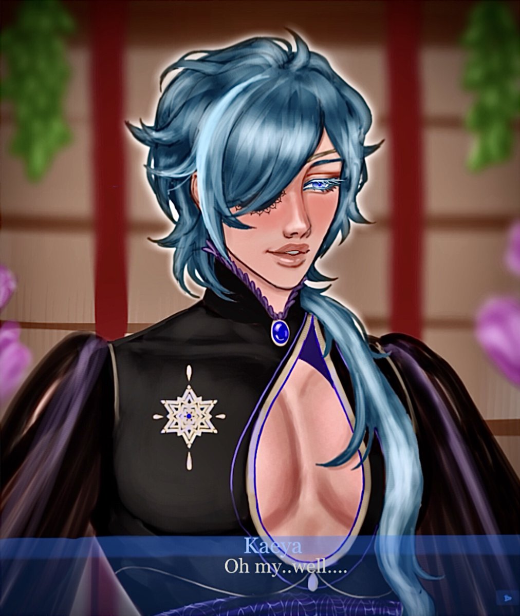 If Kaeya was in a dating sim AU. 💙Happy birthday Kaeya 💙 #Kaeya #GenshinImapct #genshinimpactfanart #kaevember #digitalart