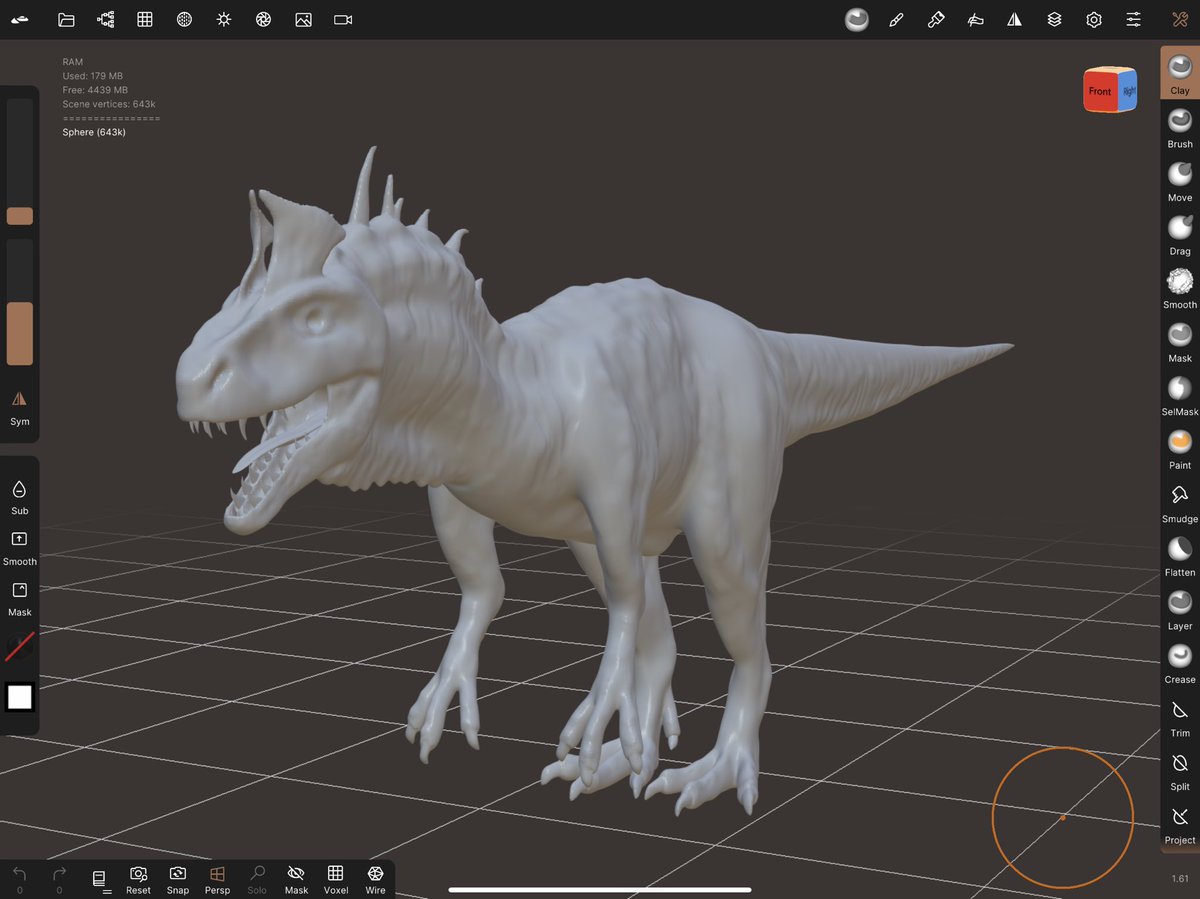 I may have to scrap this model due to issues retopologising but here’s a cryolophosaurus model I made in Nomad Sculpt! #paleoart #dinosaurs