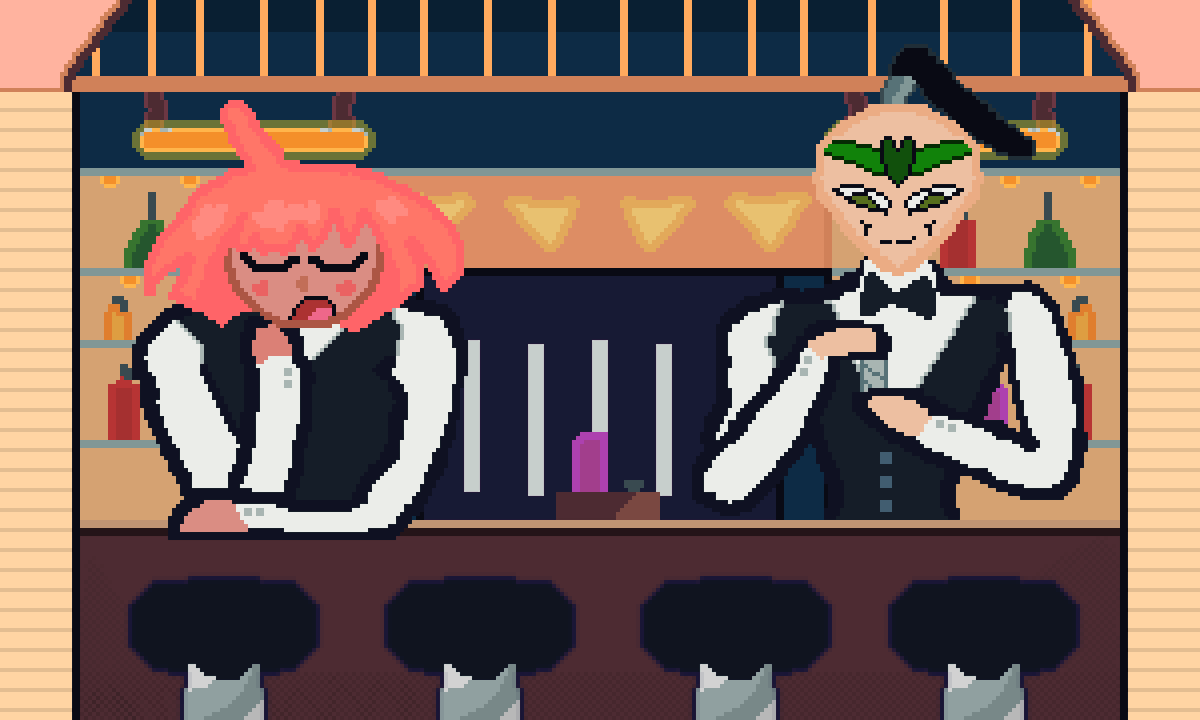2 1 Late Night Work #pixelart #ドット絵 (With my friends OC Rojo) 21/07/10 03:10