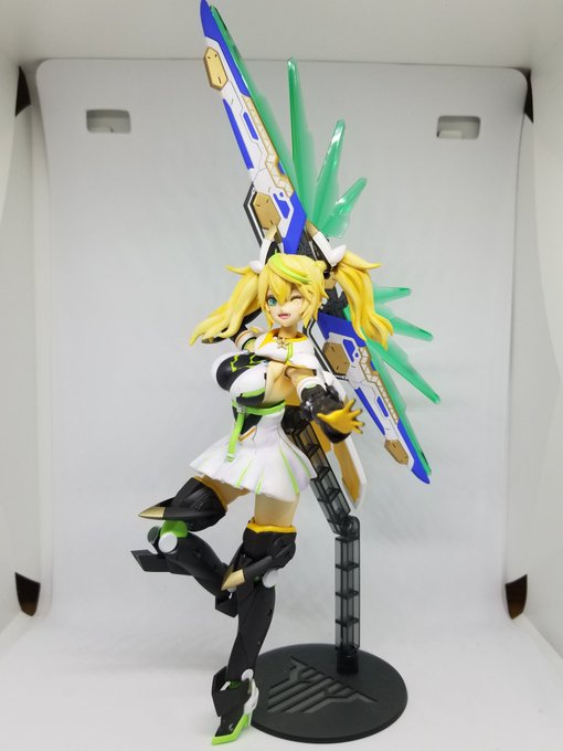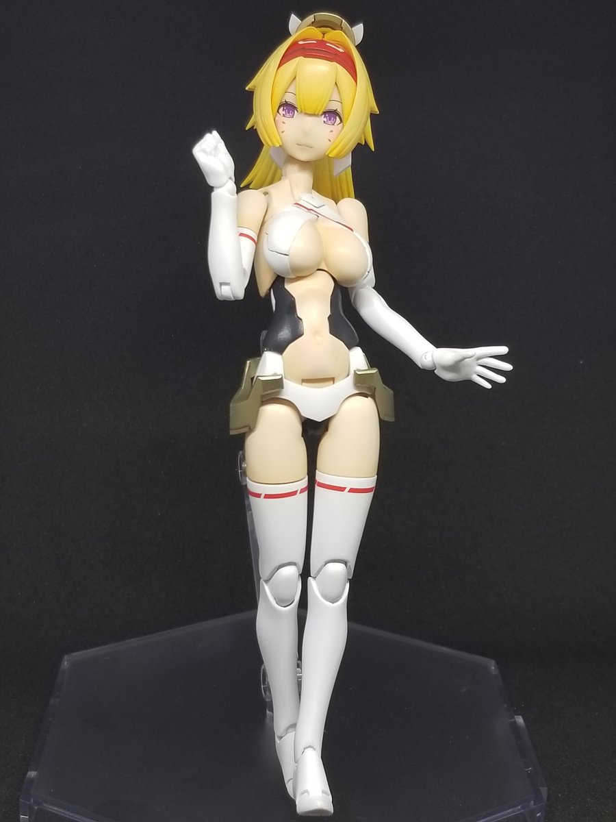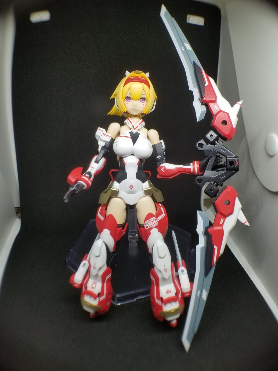 #ガンプラの画像貼るとRTされると聞いて モビルドールメイ、完成しました! 化粧やスミ入れ、追加デカールはしたけど、本体には特に手を入れていません。 お手軽な値段でこんな足長美人プラモが作れちゃうんだから、バンダイさんは凄い。 個人的にバンダイ美プラNo.1です( ´∀`)