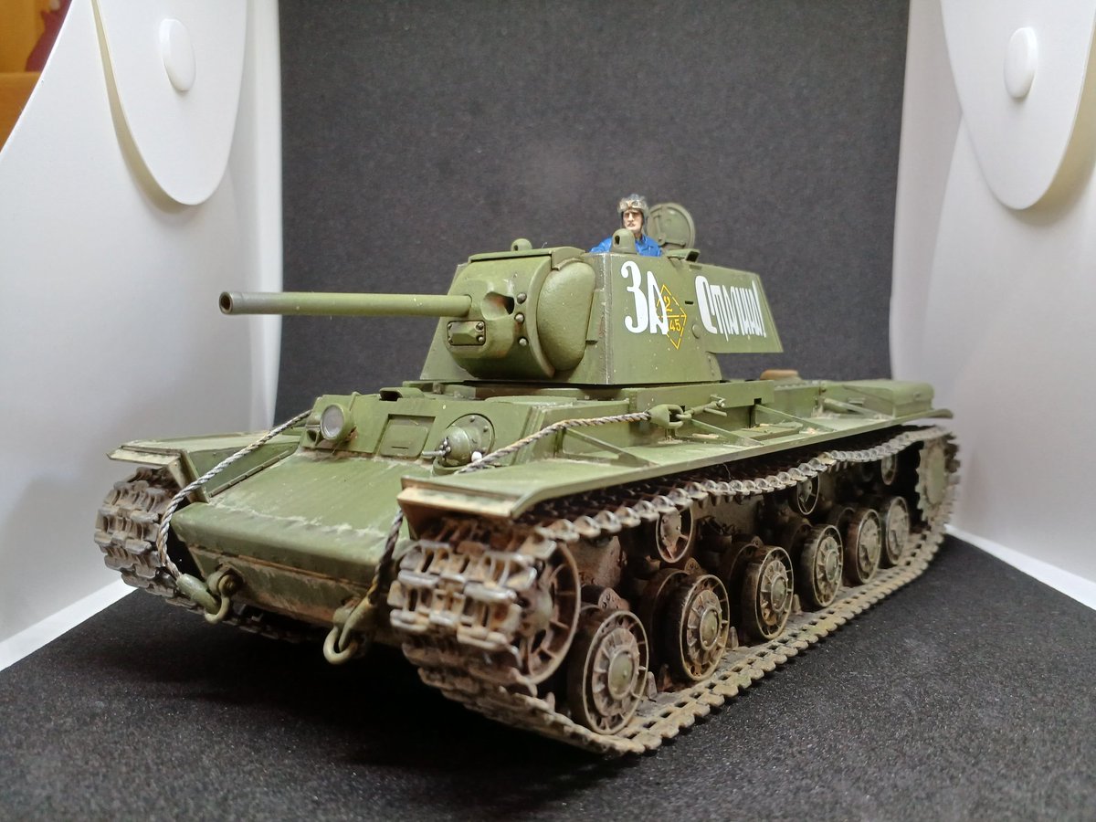 #おいでよ戦車模型へ タミヤのkv-1出来たヽ( ゚∀゚)ノ サフなし水溶きアクリル筆塗りは簡単でいいね 水転写デカールはデカールのり(軟化剤入り)とフィニッシュマスターを使えば艶消し面でもしっかり定着します