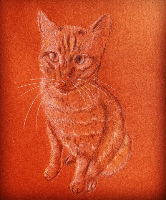 1 0 #猫絵 #色紙 #絵画 #アート #art #色鉛筆 #色画用紙 #絵が好きな人と繋がりたい 知り合いの猫を白黒の色鉛筆で 色画用紙に描いてみた。 毛の表現が難しいな。 飽きちゃったのでこれで終了。 色々試しながら又描いてみよう。 22/03/24 19:02