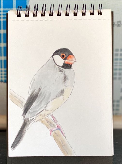 1 4 #水彩 #絵手紙 #絵画 #アート #art #水彩画 #絵が好きな人と繋がりたい #ハガキ絵 #桜文鳥 知り合いの飼っている桜文鳥を描いてみた。 画仙紙の裏側、滲みが少なくて描きやすい。 22/04/30 10:04