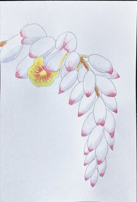 0 3 #植物画 #水彩 #絵手紙 #絵画 #アート #art #水彩画 #絵が好きな人と繋がりたい #月桃 #ゲットウ #サンニン 沖縄に咲くと言う月桃を描いてみた。 何とも不思議な形状。 いつか実物を見てみたいな。 22/05/19 08:43
