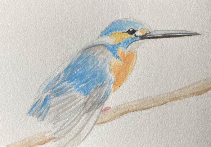0 3 #水彩 #絵手紙 #絵画 #アート #art #水彩画は奥深い #絵が好きな人と繋がりたい #ハガキ絵 #カワセミ #翡翠 カワセミを描いてみた。 今回は水彩紙を使ってみた、ケント紙と違って紙の質感が良い感じ。着彩しやすい。 22/06/11 06:38