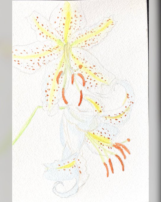 #水彩 #絵手紙 #絵画 #アート #art #水彩画は奥深い #絵が好きな人と繋がりたい #ハガキ絵 #ヤマユリ 水彩って乾くと色味が変わるので加減が難しい。そこが面白い点ところ。
