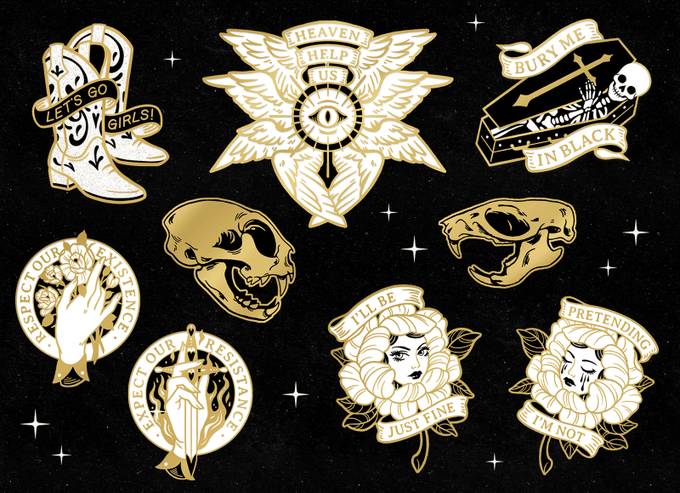 Hey #PortfolioDay! I'm Kerin and I'm an illustrator, designer and creative director. I specialize in merch, apparel and enamel pins for the music/entertainment industry and for my own online store! 🖤 kerincunningham.com 💌 kerincunningham [at] gmail