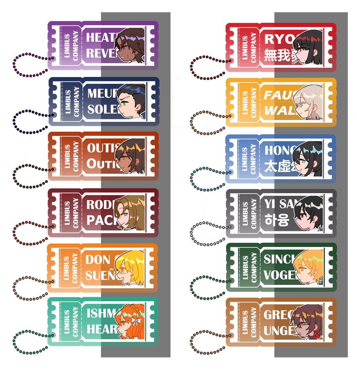 all aboard da limbus train!!! I somehow managed to finish 12 in less than 3 days, but now my fingers hurt a lot so I'm gonna take a break....(they're gonna be colored acrylic tickets!!! ) limited quantity for otakon!!! #LimbusCompany