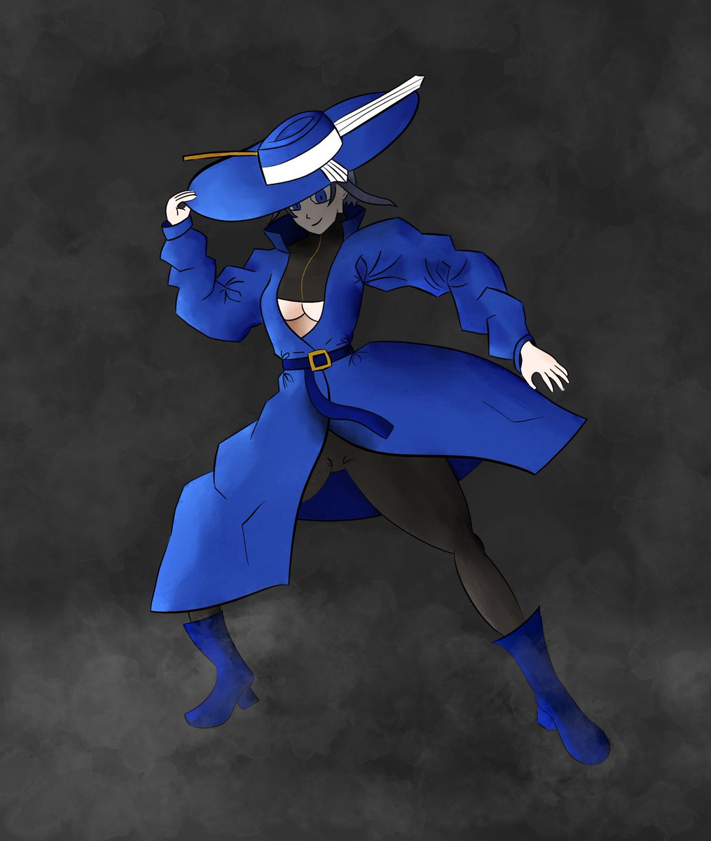 I thought it would be fun to make Kronii's clock into a wide-brimmed hat, and wound up drawing a whole Carmen Sandiego inspired outfit. #kronillust