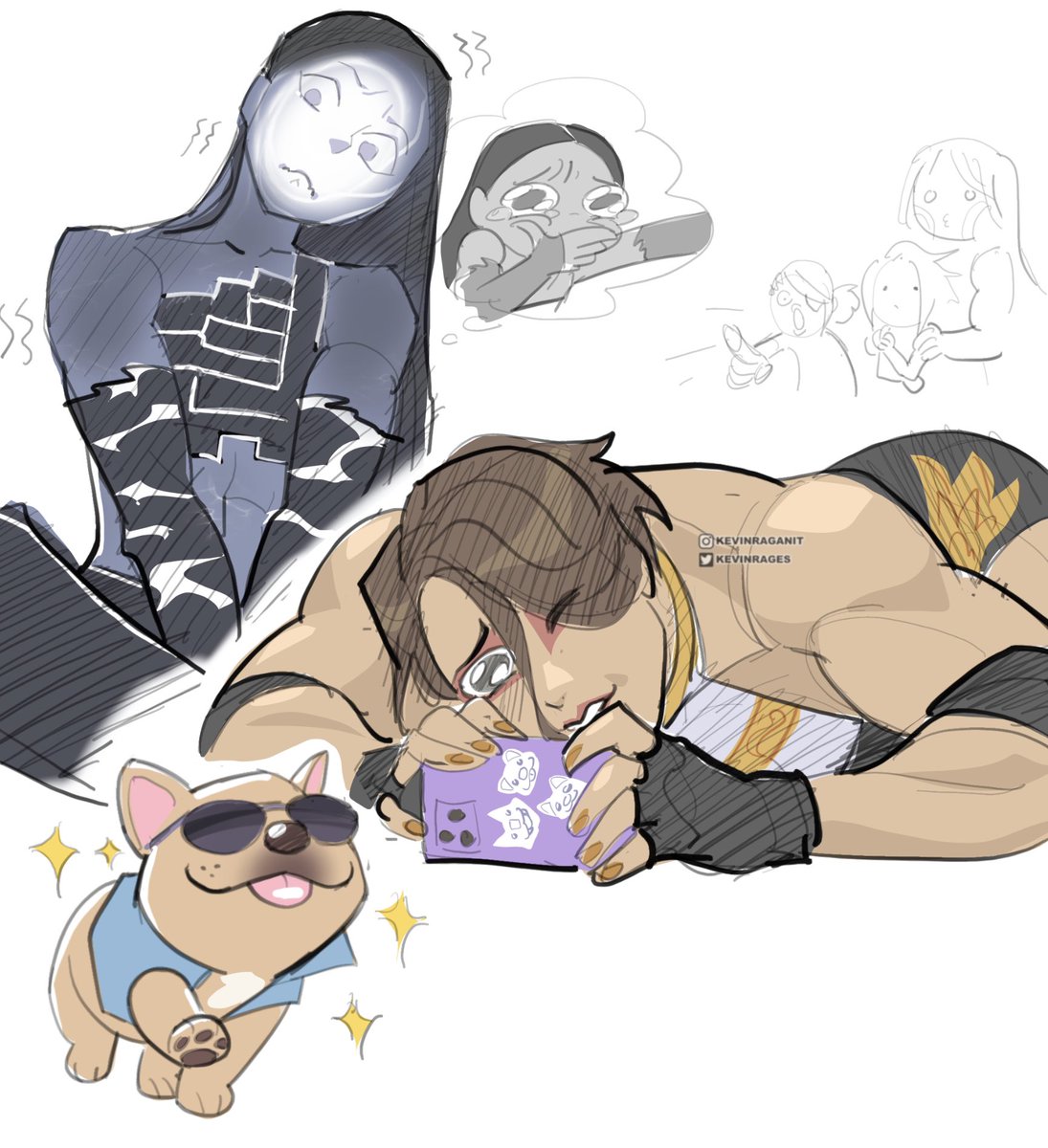 Behind the scenes, colored: More Orange Cassidy (ft. Witherhoard & Gjallarhorn) #destiny2art #destiny2wrestlingAU