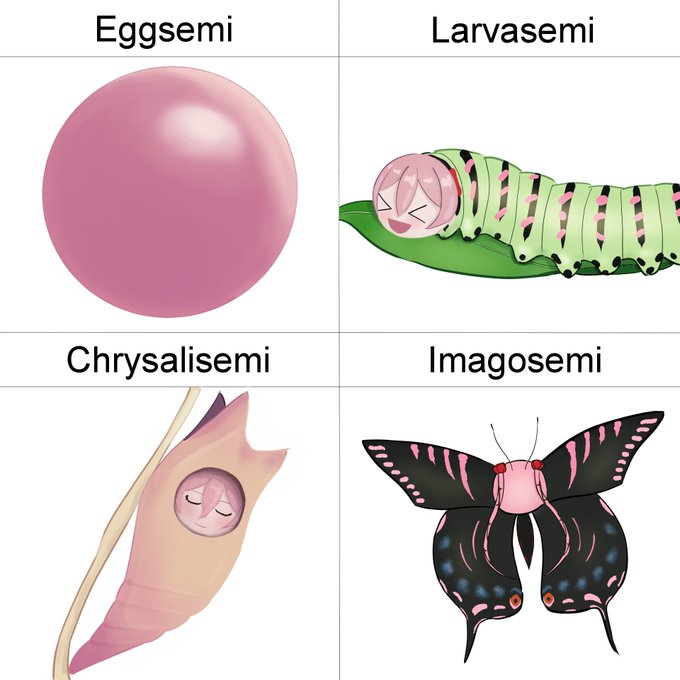 Lifecycle of Butterflysemi (Papilio Rosea) #GalleryOfRoses Inspired by the very cute Wormsemi from the first Just Dance stream. Yes Rosemi, we would still love you even if you were a worm. Happy Valentine's Day 💖🪱