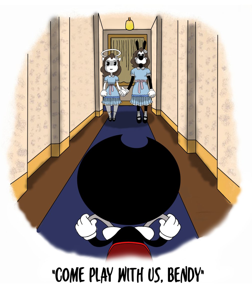 Day 26: Hallway Now is Bendy's time to feel scared... #inktober2020 #BENDY #Bendy_and_the_ink_machine #illustration #drawing #digitalart #TheShining #crossover (with a little bit of humor)