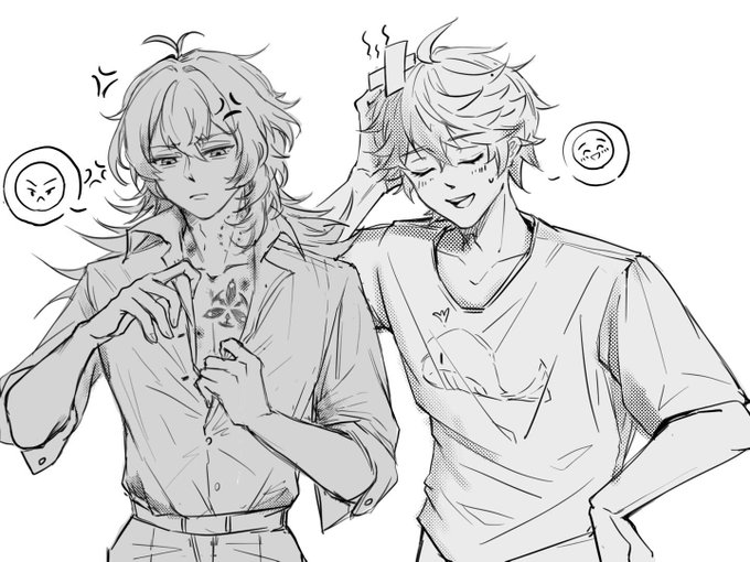 请不要大庭广众送玫瑰花。 #Chiluc #タルディル #Childe #Ajax #Diluc
