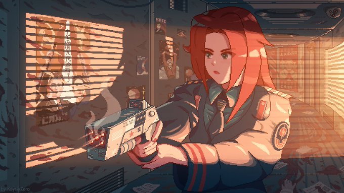 18 163 Who is she shooting at? #pixelart #ドット絵 23/03/12 00:50