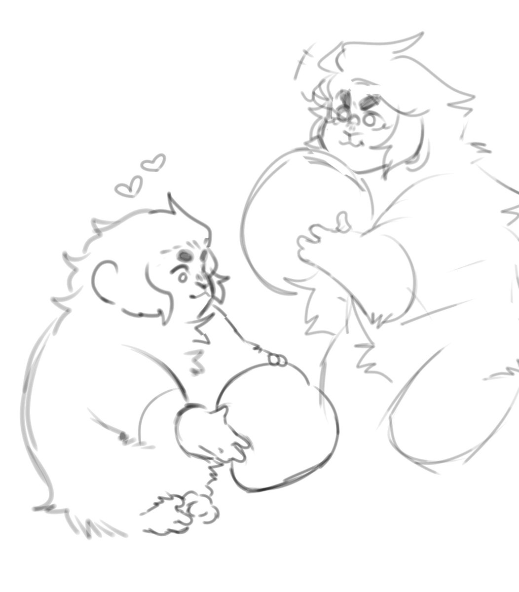 My artblock allowed me to make a cute little drawing with Wukong being a silly father and macaque a careful father. 💜🧡💛 in definition Chyou was very small and sleepy, she was born from a rock btw >;)✨ #MonkieKid #monkiekidoc #shadowpeach #lmkoc #LMKfanart