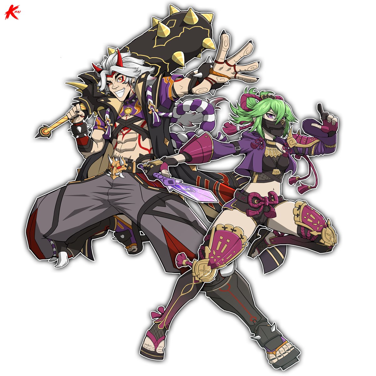 Here is Arataki Itto and Kuki Shinobu finally coloured~~ I can't wait for her to come by and I'm gonna C6 her, gotta save dem primos. #aratakiitto #kukishinobu #GenshinImapct #genshinimpactfanart