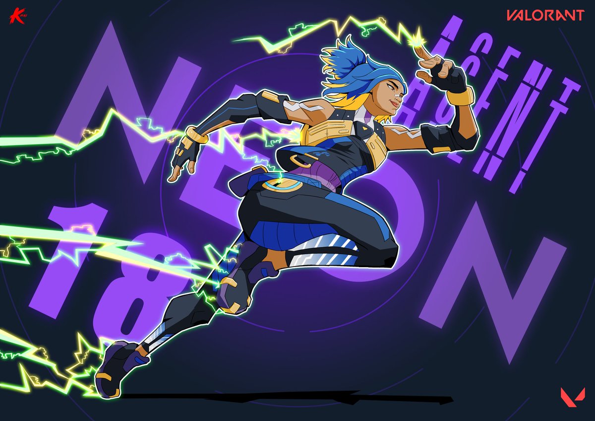 "LINTIK!" . Valorant's Agent 19 "NEON" is here! I can't wait to unlock her, seeing her gameplay...man she is OP with her sliding! Run and Gun!!! bro~ Drawing her was superb fun as well! Hope you guys love her as I do! She cute!~<3 @PlayVALORANT @riotgames #VALORANT #ValorantArt