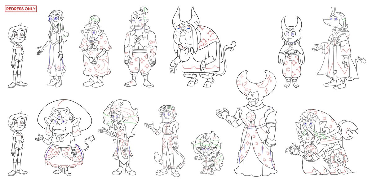 Will start a thread of my favorite character designs I got to do on #TheOwlHouse “For The Future“! (1/?) Starting off with a whole bunch of sparkles and concepts for corrupted spell circles💫✨🌙 #TOHSPOILERS
