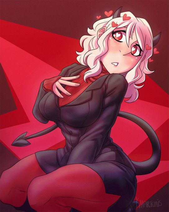 And Modeus makes her appearance! The thirsty but cute demon was one of those chosen from a past survey and here is the finished version of the illustration! Much "love" to all of you! ❤️❤️❤️ #Modeus #helltaker #Helltakerfanart