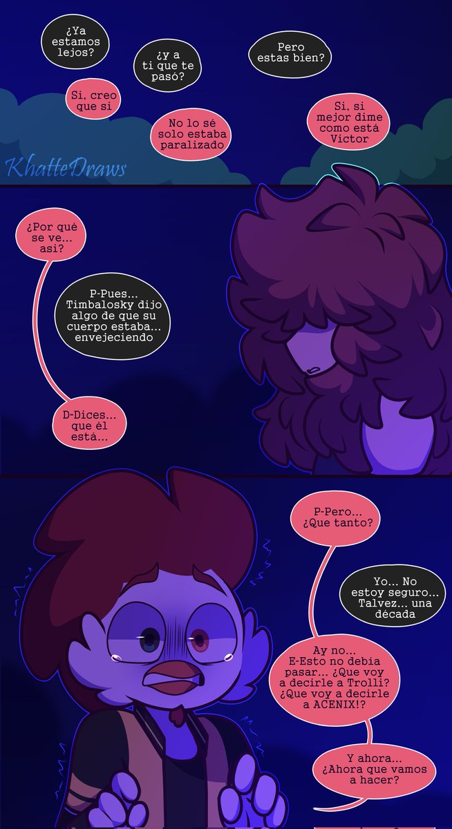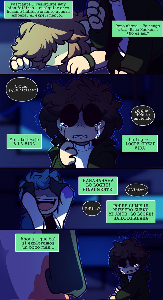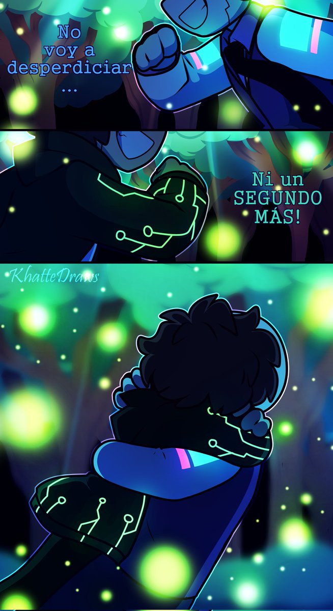 💚: Ahora que tengo que reconstruir la máquina... 💛: Yo te ayudaré 💚: En serio? :D 💛: Sip, pero primero descansa si? No quiero que te paso nada 💚: De acuerdo... Podremos cumplir tu sueño... 💛: NUESTRO sueño... 💚: Te amo mi pollito 💛: Ya también te amo... Mi lokito